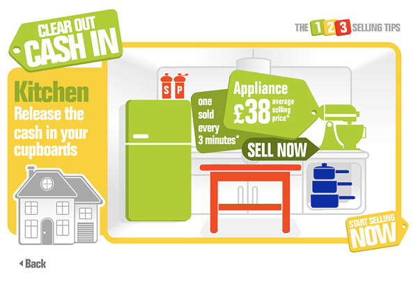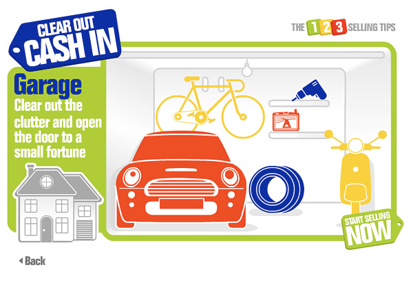 On-site interactive ad to encourage eBay users to sell more items. Users clicked on each room of the house to discover items that sell well.