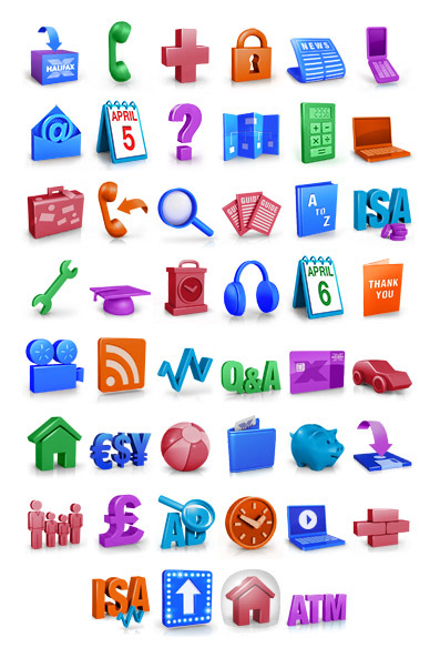 Suite of icons to be used across the re-designed Halifax.co.uk website. Following successful implementation some were scaled up and used in-branch